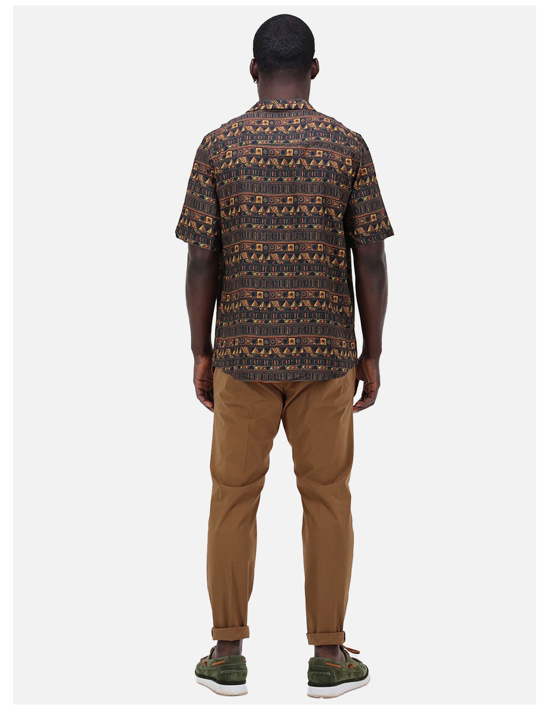 La camicia è realizzata in una morbida e leggera viscosa, offrendo un comfort ottimale. La vestibilità è di tipo regular fit, garantendo una silhouette comoda ma non troppo aderente. Presenta un collo classico e maniche corte, perfette per i giorni più caldi. La chiusura avviene tramite bottoni, consentendo una facile apertura e chiusura. Realizzata in una combinazione di poliestere e viscosa, offre una vestibilità leggera e traspirante.